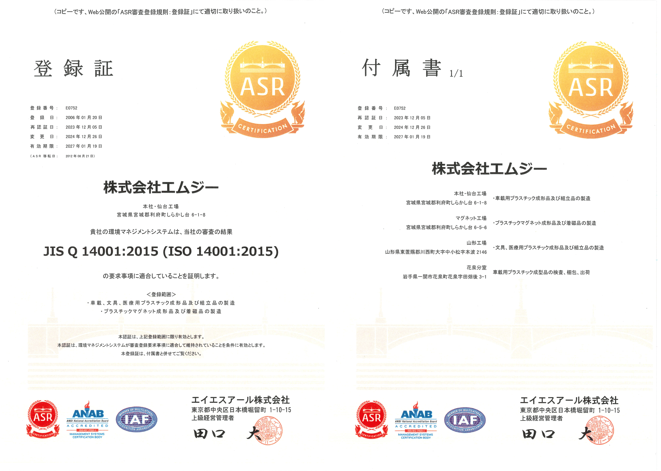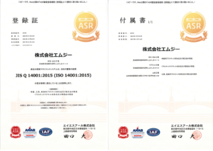ISO 14001 環境マネジメントシステム認証取得