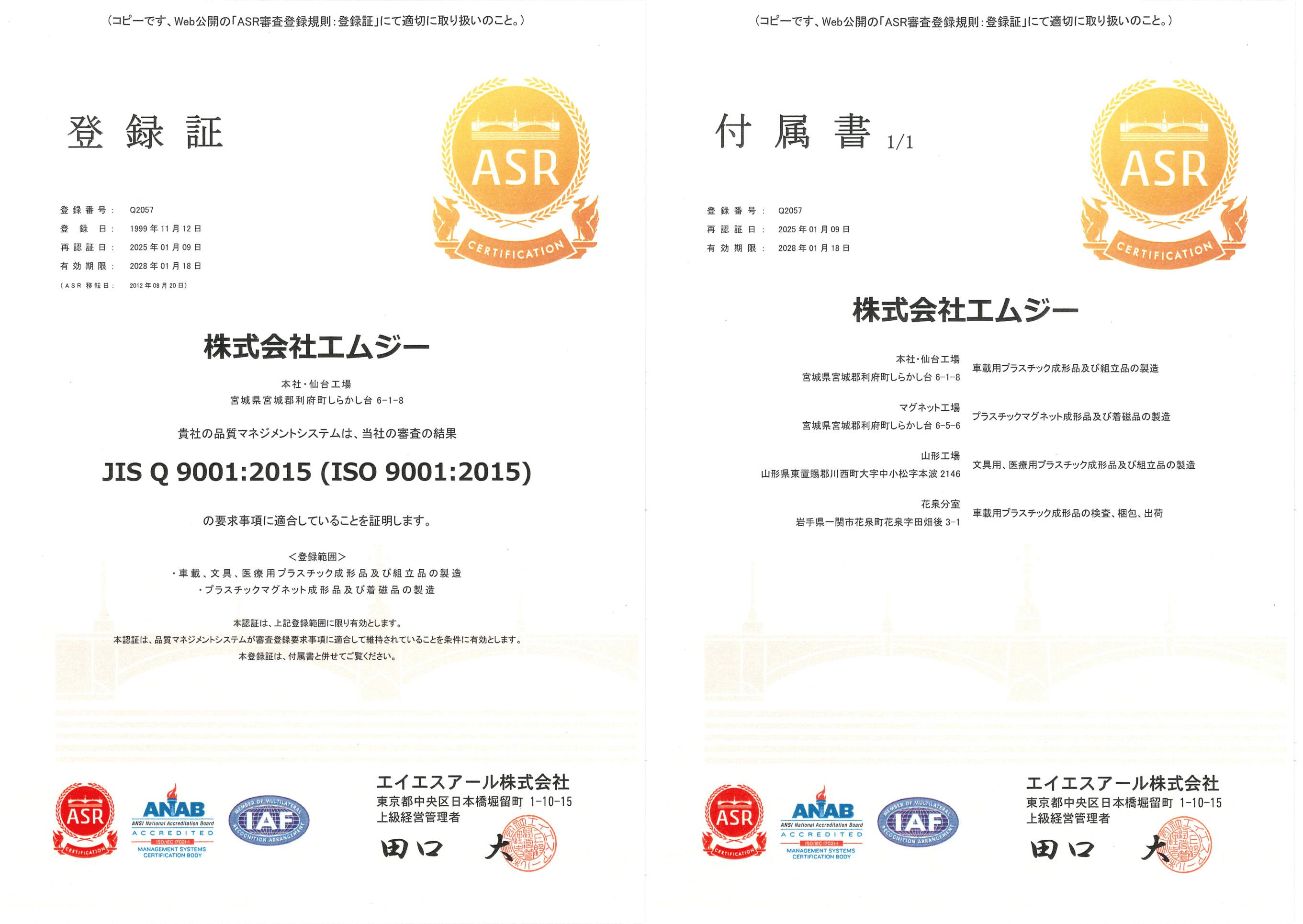 ISO 9001 品質マネジメントシステム認証取得